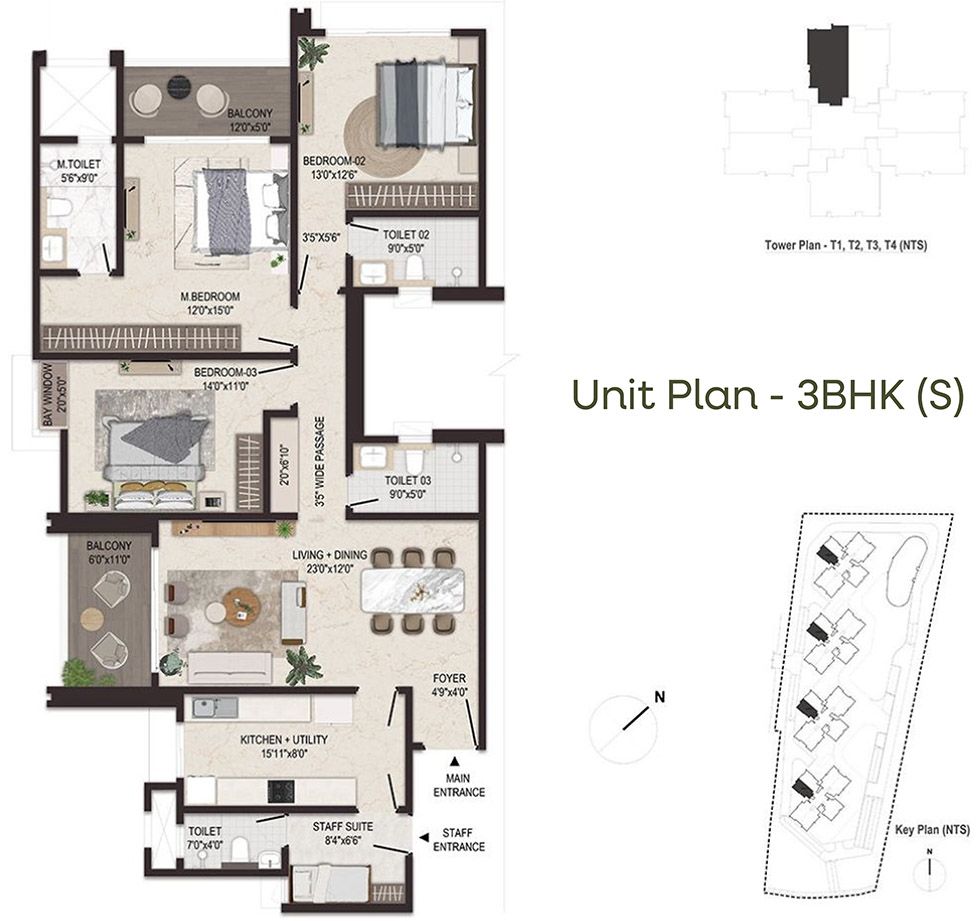The project offers highly exclusive and limited edition ready-to-move-in spacious 2.5,3.5 BHK Apartments with luxurious features. Beautiful landscapes all around make The Residences at BTG more special & Elite.